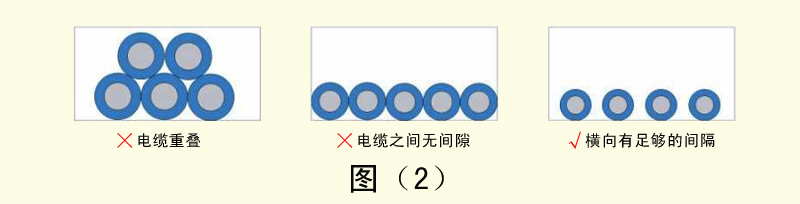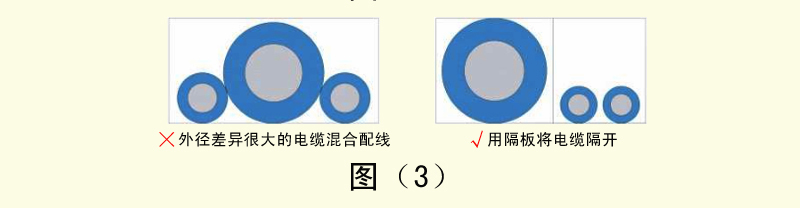 4、外徑差異很大的電纜如果混合配線,容易導(dǎo)致細(xì)線被粗線壓迫,造成細(xì)線容易斷線。這時(shí)需要用隔板將電纜隔開。如圖(3)