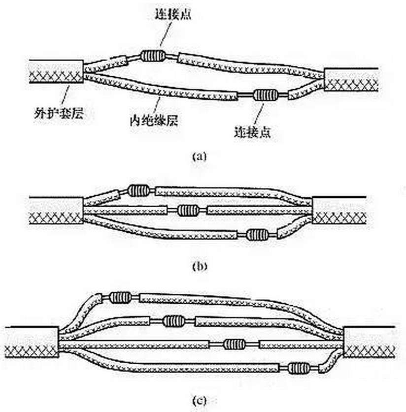 為了進(jìn)行連接,導(dǎo)線連接處的絕緣層已被去除。導(dǎo)線連接完成后,必須對(duì)所有絕緣層已被去除的部位進(jìn)行絕緣處理,以恢復(fù)導(dǎo)線的絕緣性能,恢復(fù)后的絕緣強(qiáng)度應(yīng)不低于導(dǎo)線原有的絕緣強(qiáng)度。